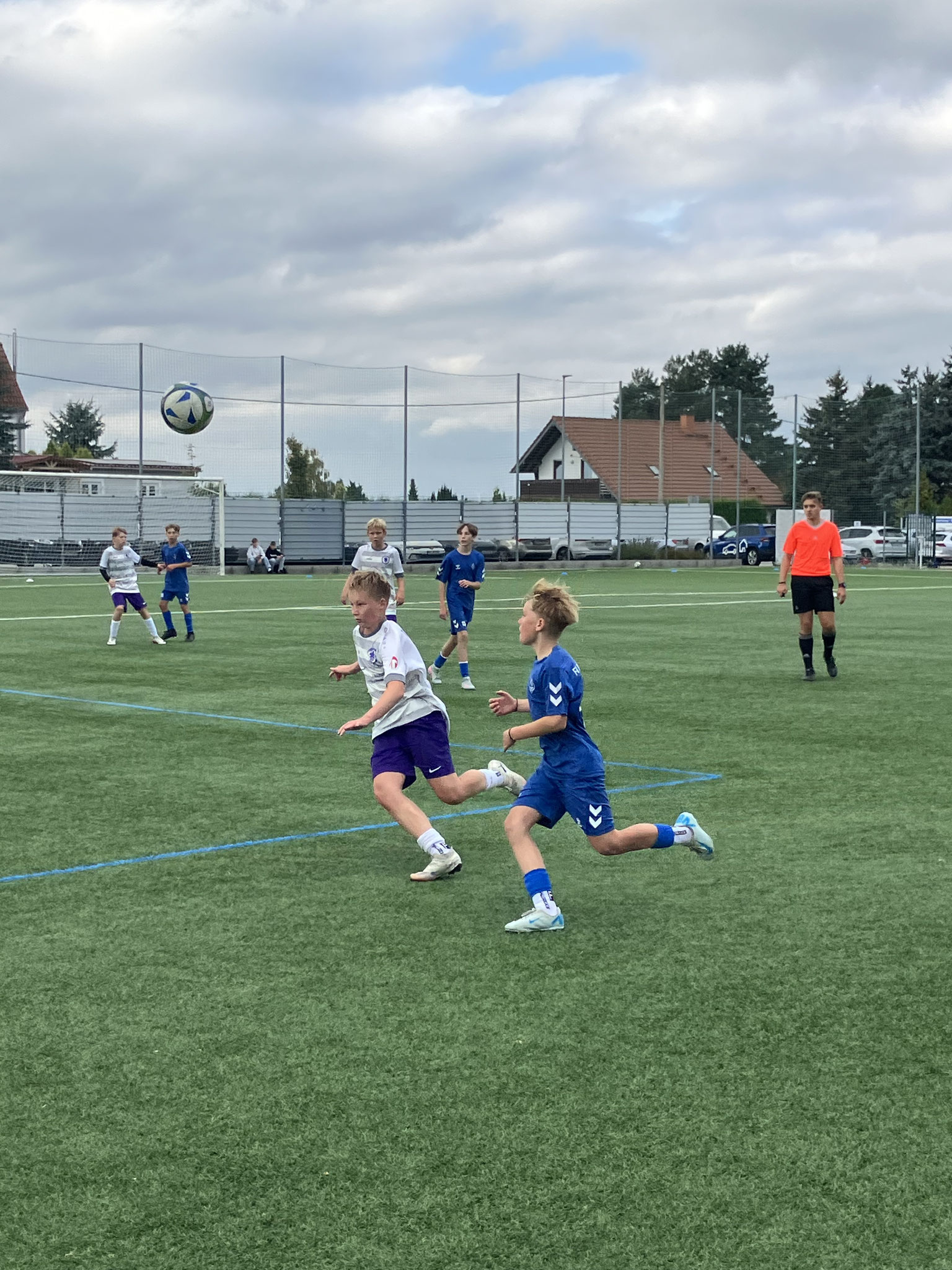 Unser Team startete konzentriert in die Partie, in der die Röhrsdorfer von Anfang an ihre fußballerische Qualität unter Beweis stellten. Besonders beeindruckend waren dabei die beiden Abwehrspielerinnen der Gäste, die immer wieder unsere Angreifer mit cleveren Zweikampfverhalten vor Probleme stellten. Aber die TuS-Kicker ließen sich davon nicht entmutigen und gingen in der 17. Spielminute durch Leif in Führung. Danach erhöhten die Blau-Weißen den Druck auf unser Tor und die Abwehr um Moritz und Aaron musste immer wieder in höchster Not retten. Doch die Lilanen nahmen den Kampf an und pushten sich gegenseitig.
