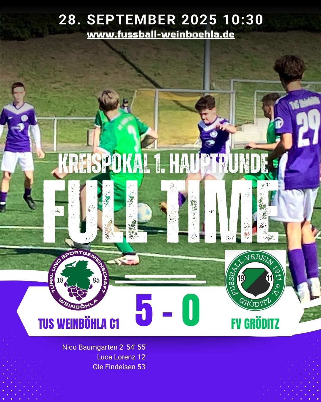Am Sontag gelang unserer C1 ein beeindruckender 5:0-Sieg gegen den Mitfavoriten FV Gröditz im Kreispokal. Das Spiel fand auf heimischem Boden in Weinböhla statt und war geprägt von einer dominanten Leistung der Gastgeber, die Gröditz kaum ins Spiel kommen ließen.